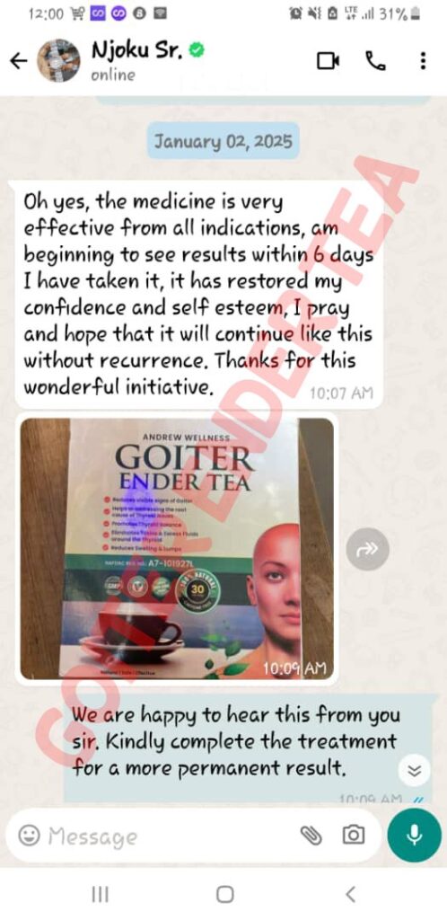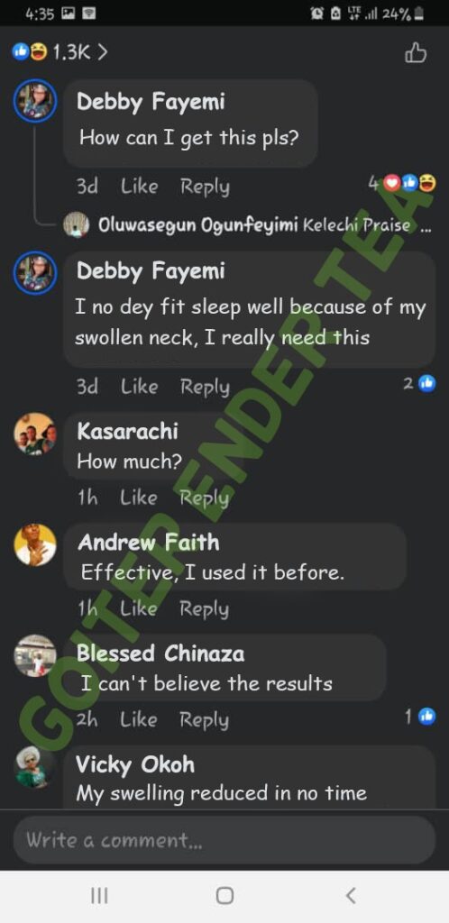 Goitre Ender Tea is the herbal product that thousands of Nigerians are using to cure all type of throat, mouth and neck problems.